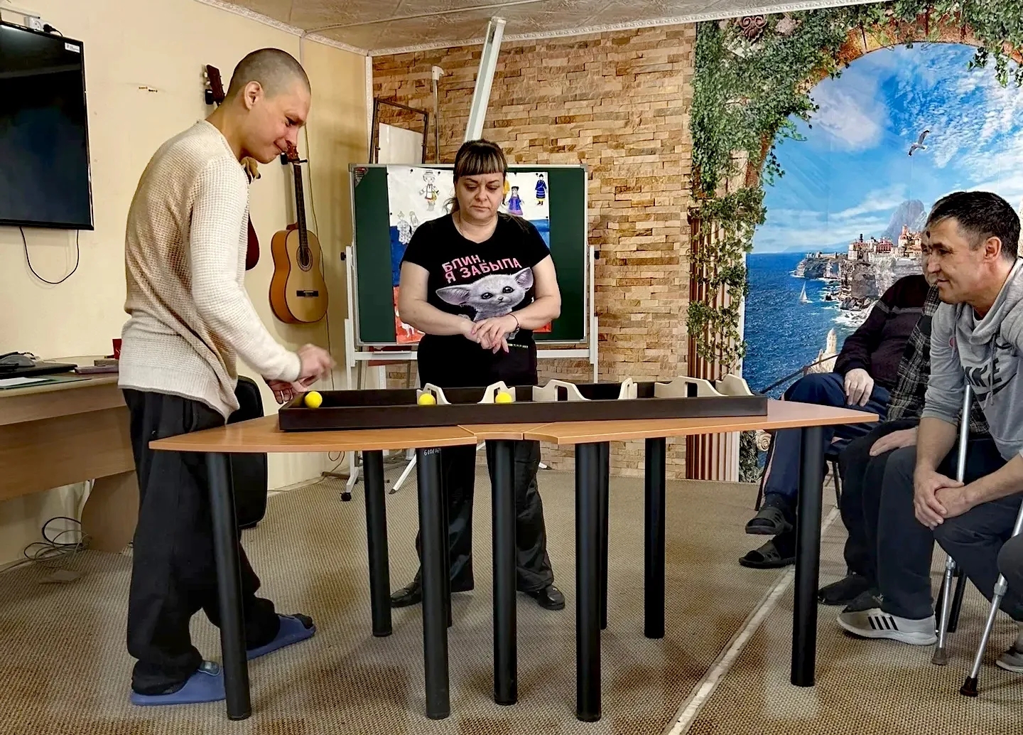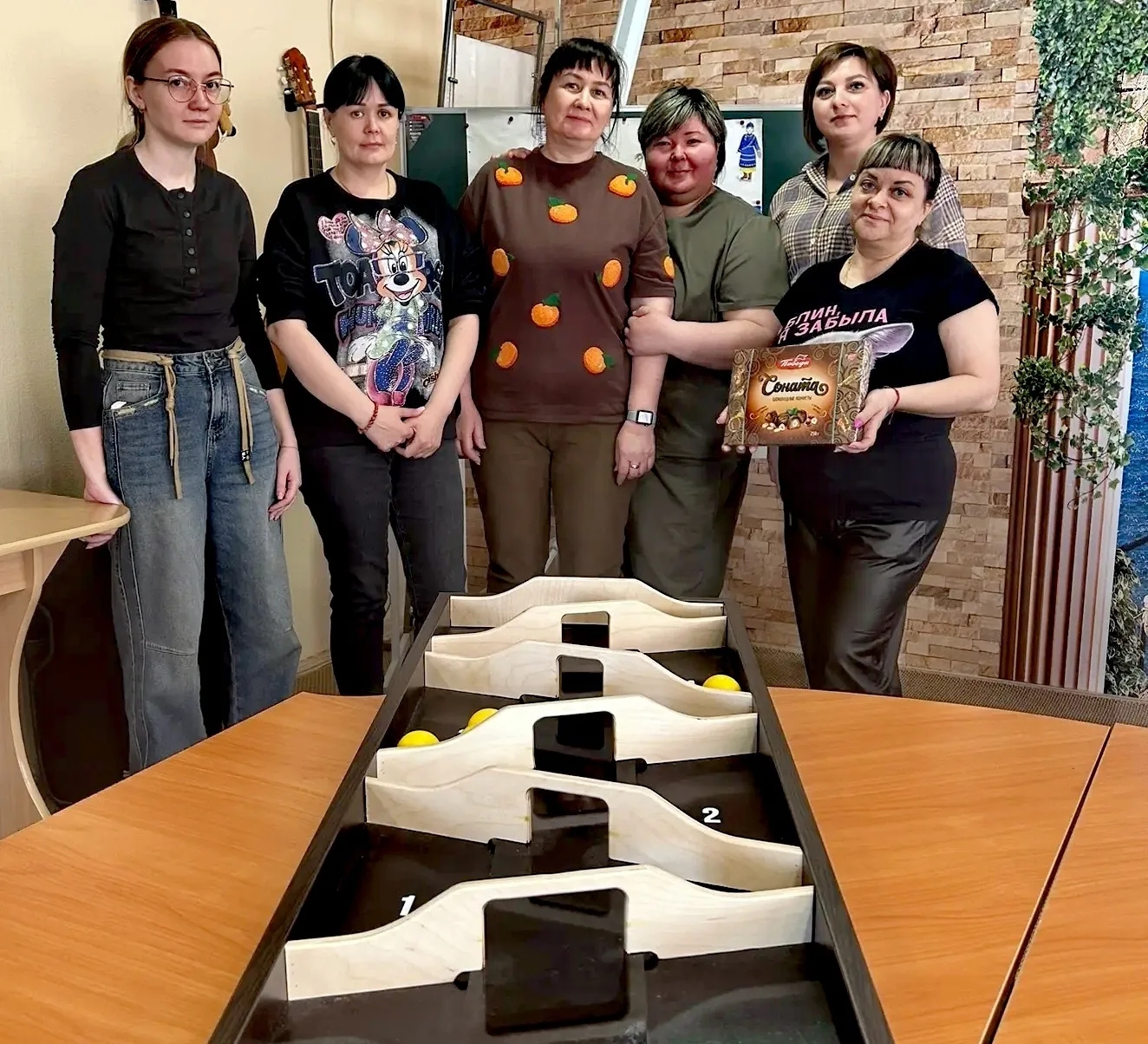 Состоялся увлекательный турнир по «Шар-тоннелю», где встретились две яркие команды: сотрудники «Апельсинки» и проживающие «Мухоморы».