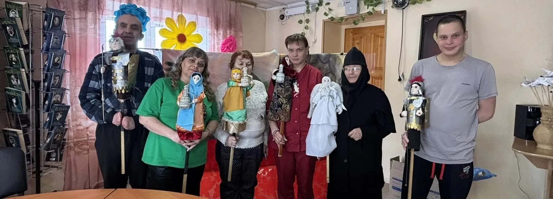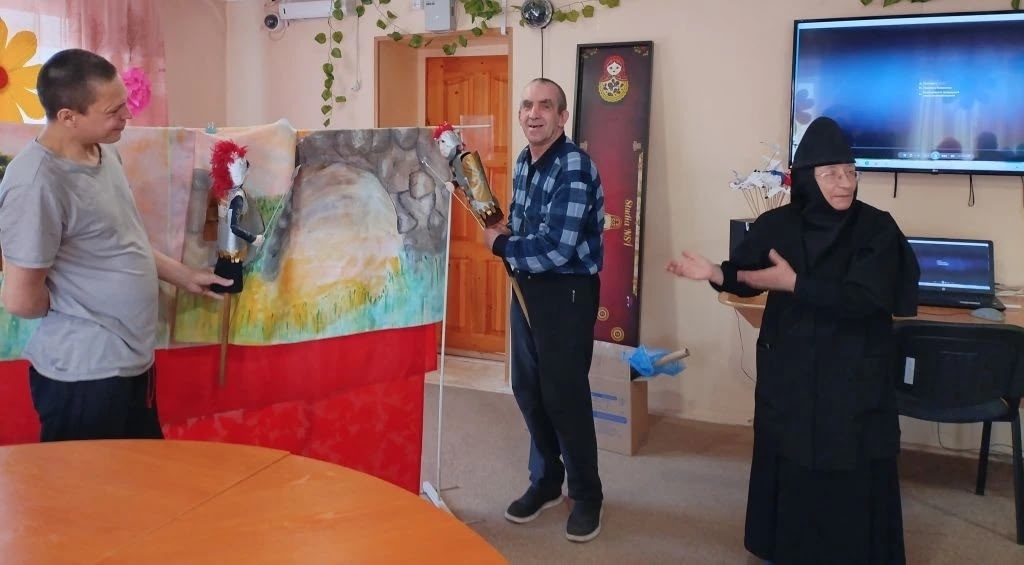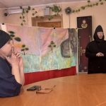 Матушка поздравила всех со Светлой Пасхой Христовой, празднование которой продолжается в течение 40 дней, рассказала присутствующим евангельские события, предшествующие Воскресению Христову, объяснила смысл Крестных страданий Спасителя, сошествия Его во ад и Воскресения как дарования Господом каждому человеку возможности на спасение и жизнь вечную в Царствии Небесном, подопечные приюта благодаря инсталляции стали участниками событий.
