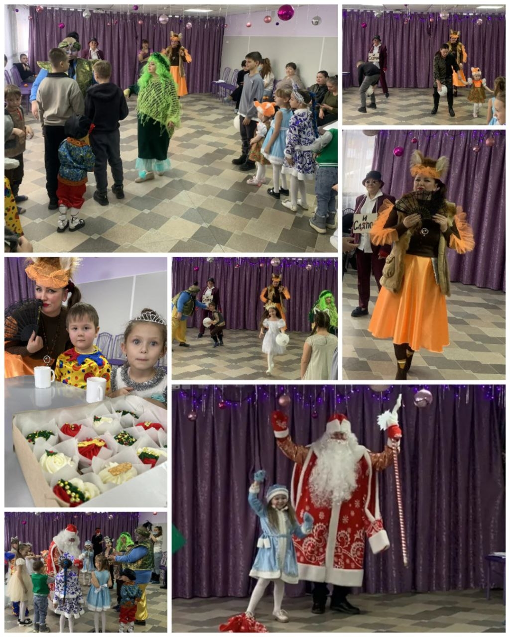В этот день, наполненный смехом и волшебством, каждый ребенок почувствовал себя частью настоящей новогодней сказки. Улыбки не сходили с их лиц, когда они делились впечатлениями о встрече с любимыми героями, вспоминая самые яркие моменты: как ловко они отгадывали хитроумные загадки Алладина и Жасмин, как забавно пытались подражать пингвинам под руководством хитрой Лисы Алисы и кота Базилио, и как захватывающе было кружиться на карусели вместе с Красной Шапочкой и ее, на удивление дружелюбными, волками. Малыш и Карлсон прокатили всех на новогоднем паровозе, а Баба Яга, Кикимора и Джин танцевали с детьми в зажигательных танцах.