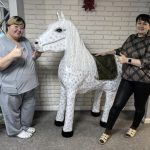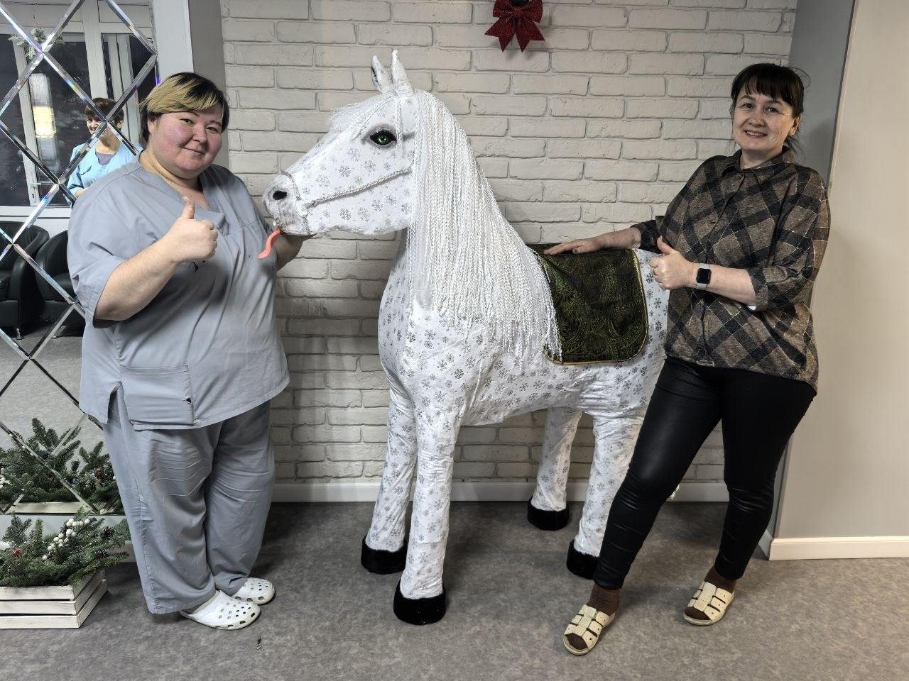 Сотрудники ГАУСО «Социальный приют» Забайкальского края Наталья Александровна Татаркина и Евгения Юрьевна Голубева представили на конкурс свою ростовую поделку лошади — символа Нового года. Жюри присудило работе I место.