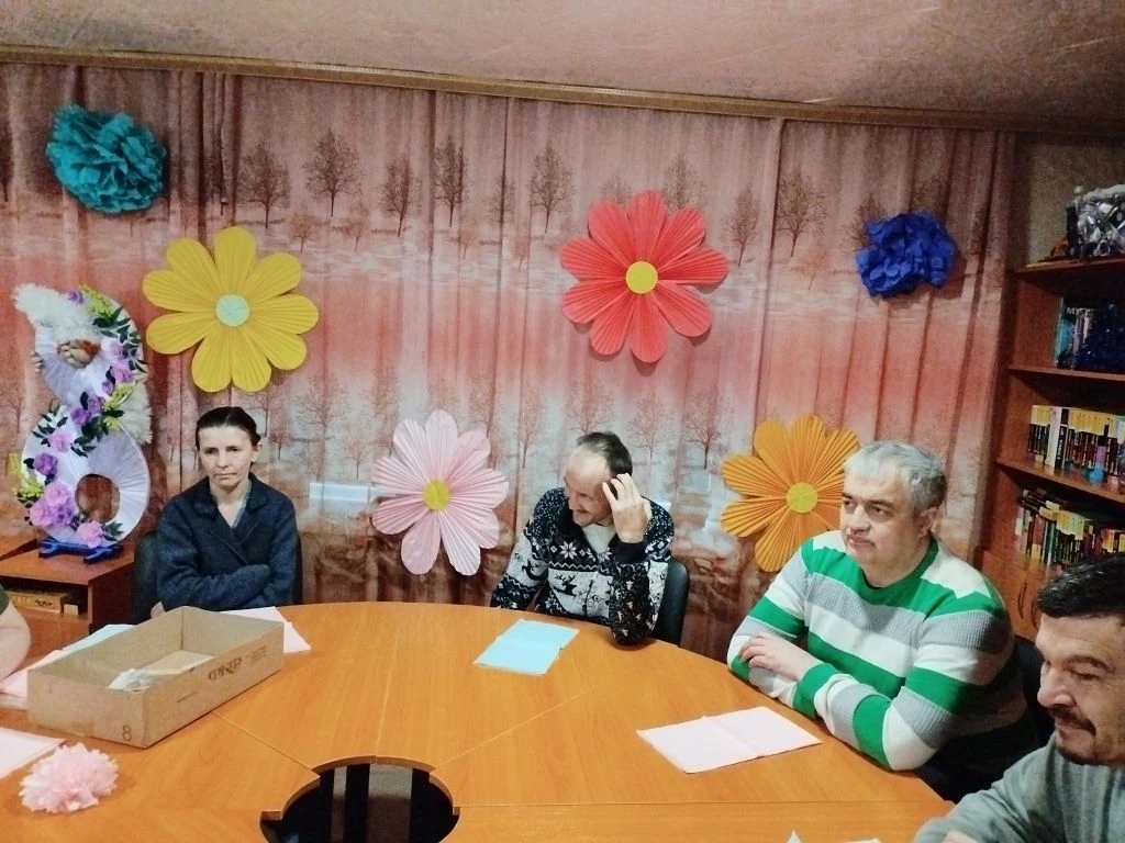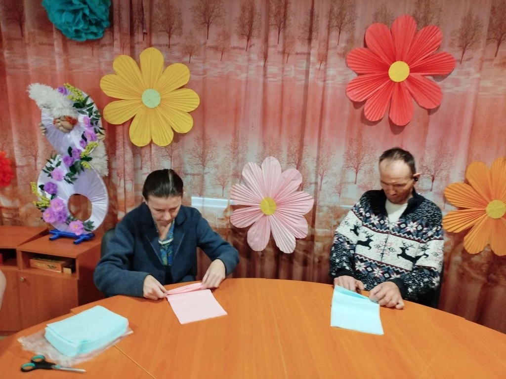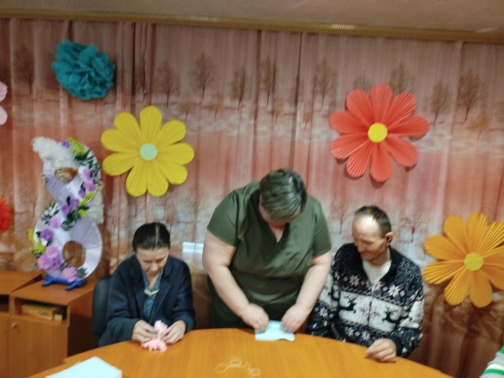 Психолог Анастасия Крылова начала встречу с увлекательного рассказа об истории Международного женского дня, погрузив всех в атмосферу праздника. А затем эстафету подхватила Наталья Татаркина, которая провела замечательный мастер-класс по созданию нежных цветов из обычных салфеток.