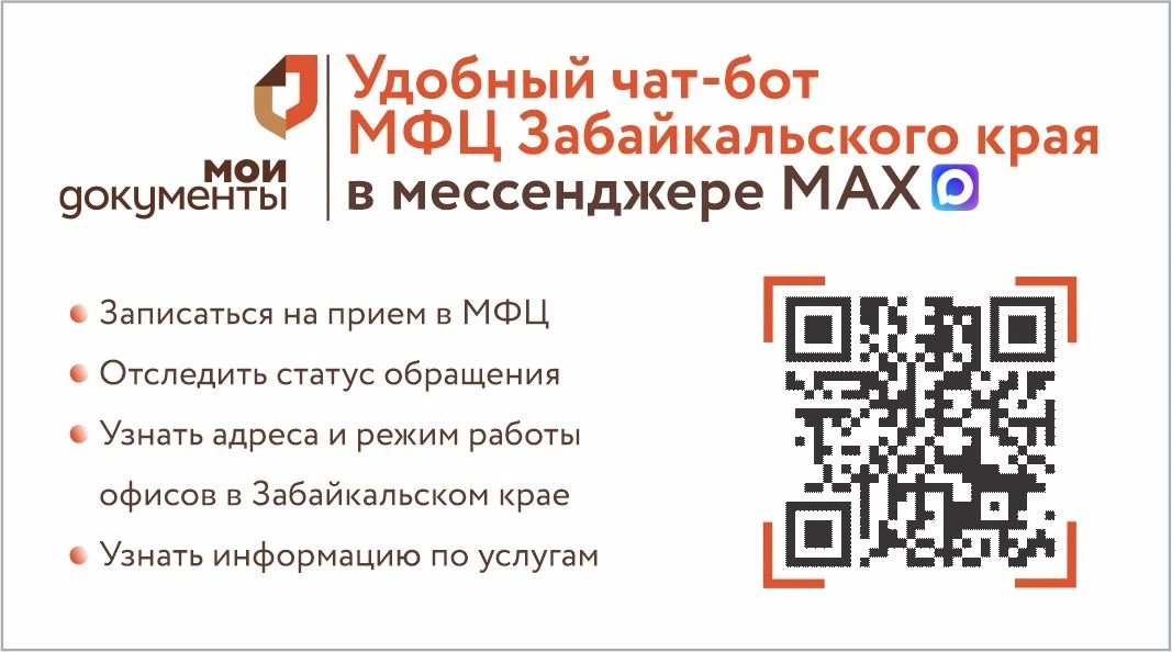 В Забайкальском крае активно работает чат-бот Центра «Мои Документы» в национальном мессенджере МАХ. который набирает популярность как удобная и безопасная альтернатива другим интернет-мессенджерам.